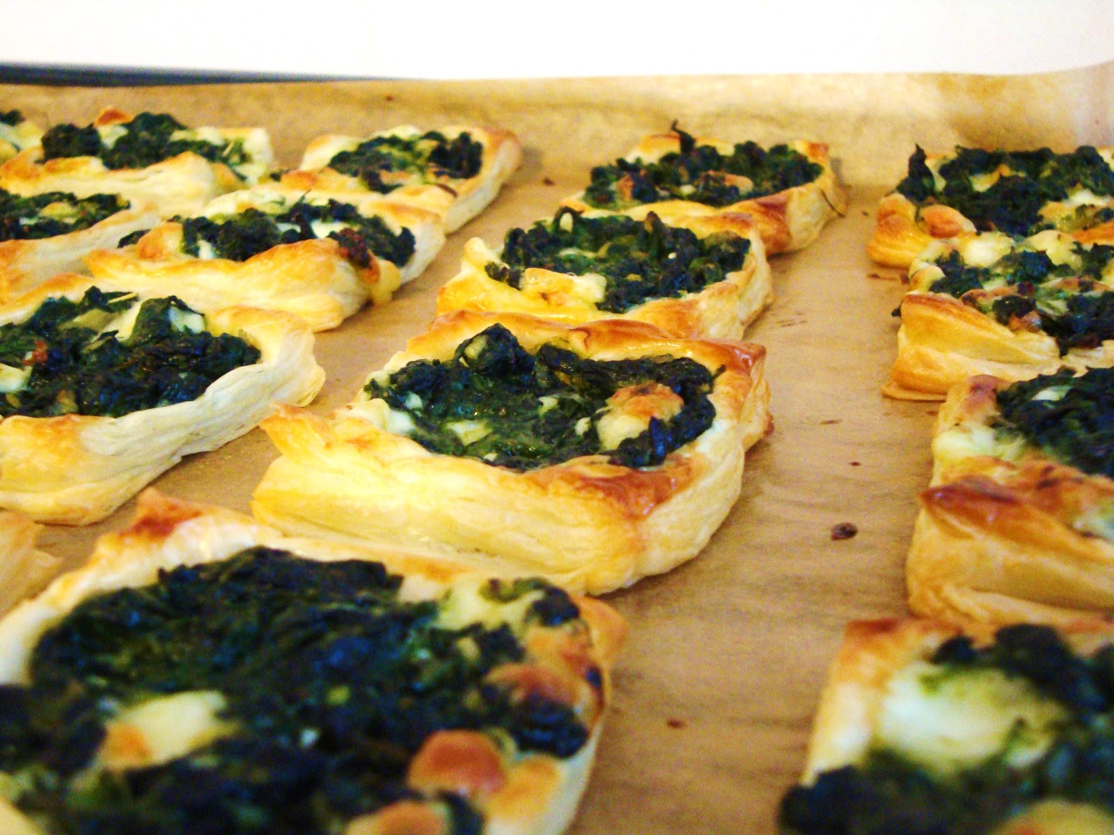 Szpinakowce, czyli niewielkie "ciastka" z ciasta francuskiego ze szpinakiem. Prosty, ale oryginalny pomysł. Zdecydowanie polecam na każdą imprezę!